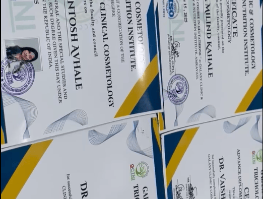 "I'm Dr. Vaishali Jadhav from Chh. Sambhajinagar. I’m very happy to have been certified in the PGDCC course from Galaxy Clinic, Amravati. Dr. Anjali ma’am is an excellent teacher with a kind nature. I highly recommend this course to doctors who want to begin their cosmetology practice. Thank you!"